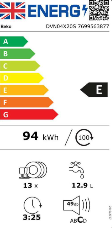 BEKO DVN04X20S silver full-size dishwasher, 13 place settings, quick wash, energy-efficient, available at Kean’s Claremorris
