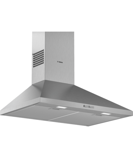 Bosch Serie 2 75cm stainless steel pyramid chimney cooker hood with LED lights, 3-speed extractor, dishwasher-safe filters –