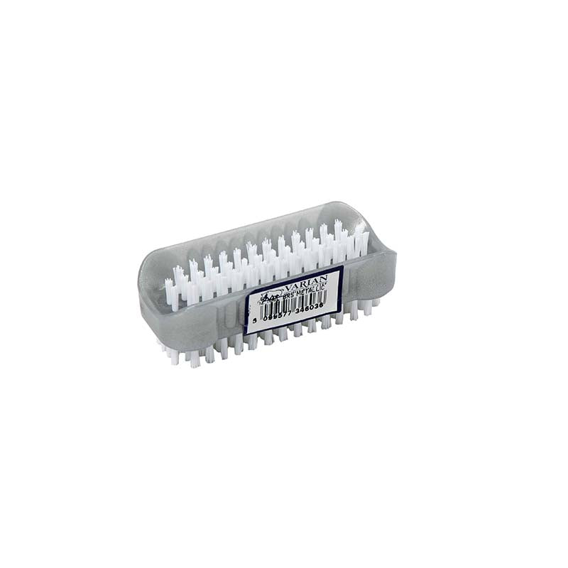 Grippy Type Synthetic Nail Brush with nylon bristles, textured non-slip red/silver handle, ideal for hand cleaning - Keans