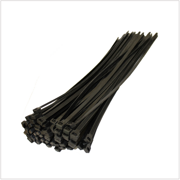 Black 7.6mm x 500mm cable ties, durable, UV-resistant, secure fastening for cables and wires – Keans Claremorris.