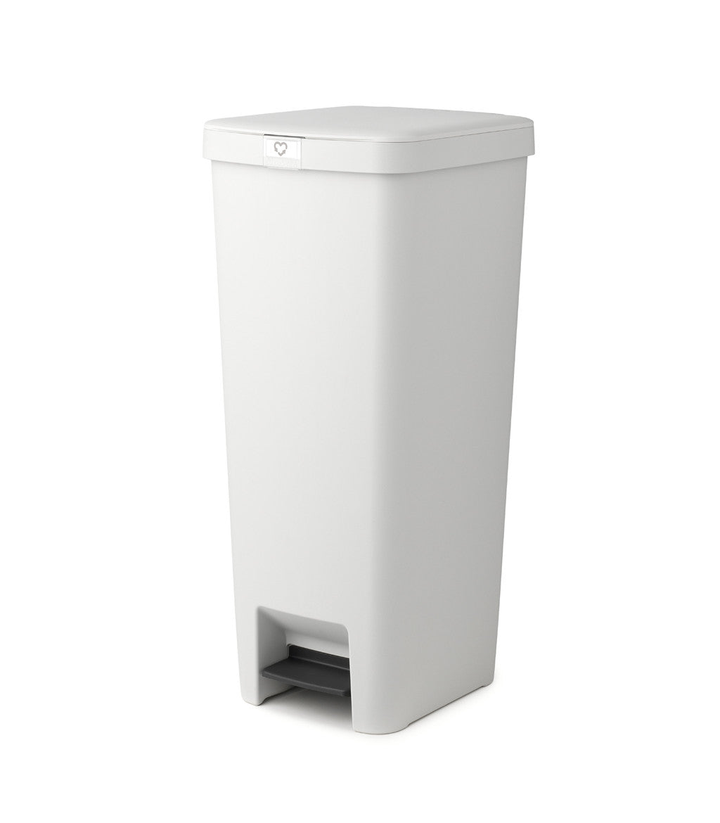 Brabantia StepUp 40L pedal bin in light grey, 91% recycled, soft-close lid, label holder, bag storage – Keans Claremorris
