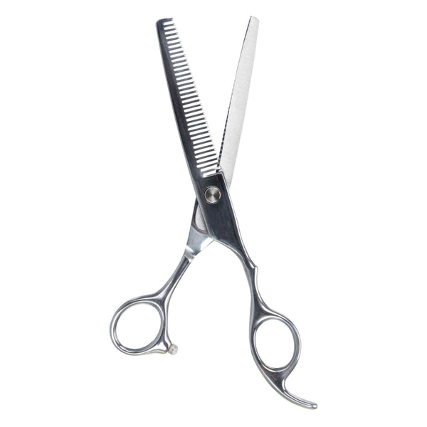 Thinning scissors 18cm, onesided stainless steel blades, soft rubber stoppers, for dogs and small animals – Keans Claremorris