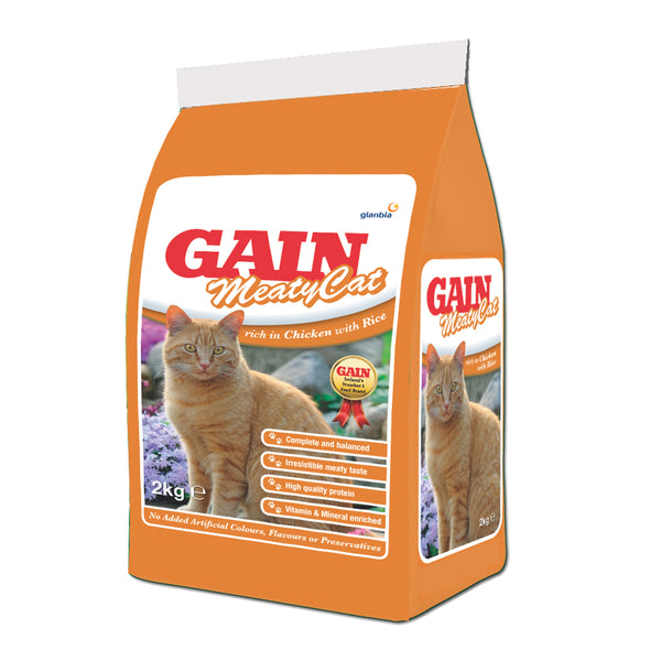 Gain Meaty Cat Food 2kg bag, high protein chicken & rice formula, vitamin enriched, for all life stages – Keans Claremorris