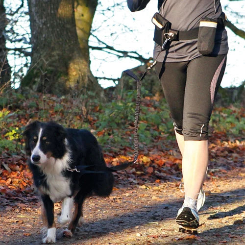 Waist belt with lead, elastic waistband, shock absorber, reflective stripes, pockets, quick-release buckle – Keans