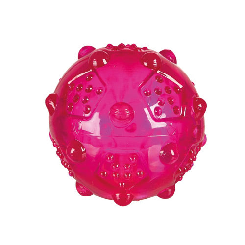 Pink 7cm Trixie thermoplastic rubber dog ball with sound, durable and textured for easy grip – Keans Claremorris.