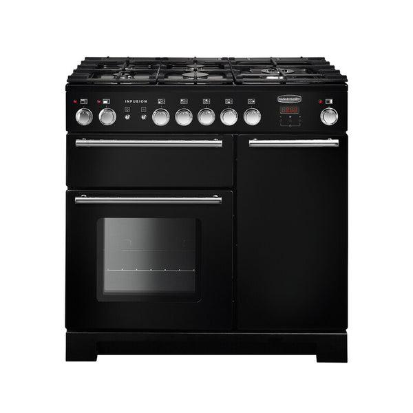 Rangemaster Elan Deluxe 90 Black Dual Fuel Cooker with 5 burners and 3 ovens, traditional style – Keans Claremorris