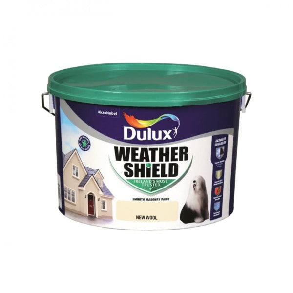 Dulux Weathershield New Wool 10L exterior masonry paint, durable, waterproof, fade-resistant, matt finish - Keans Claremorris