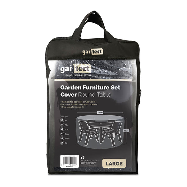 Gartect Classic black round table cover, 600D polyester, water repellent, UV protection, drawstring fit, 180x90cm - Keans