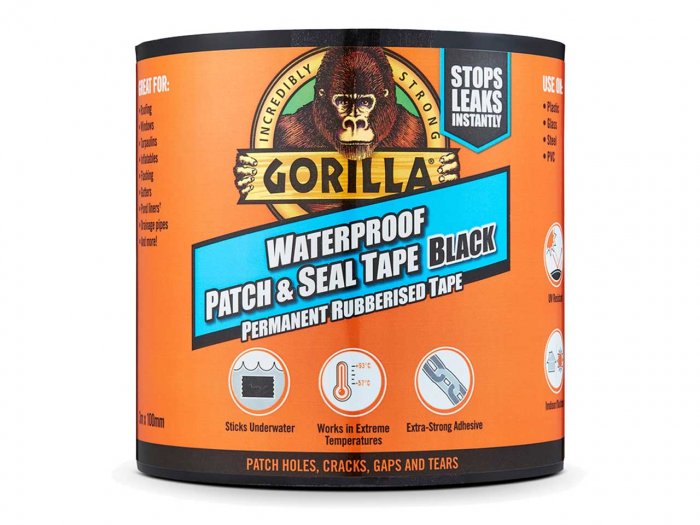 Gorilla Weatherproof Patch 2 - 3m x 100mm black waterproof, UV-resistant tape for outdoor repairs | Keans Claremorris