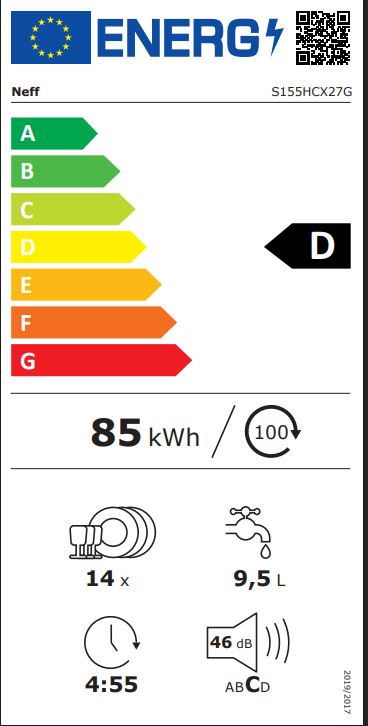 Neff N 50 60cm Built-In Dishwasher S155HVX00G, 14 place settings, Flex II baskets, Home Connect, quiet, Keans Claremorris