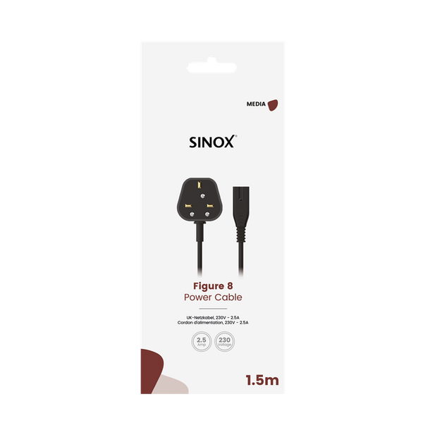 Sinox SX Figure 8 1.5m Power Lead 2.5A 230V cable in FSC box - Keans Claremorris