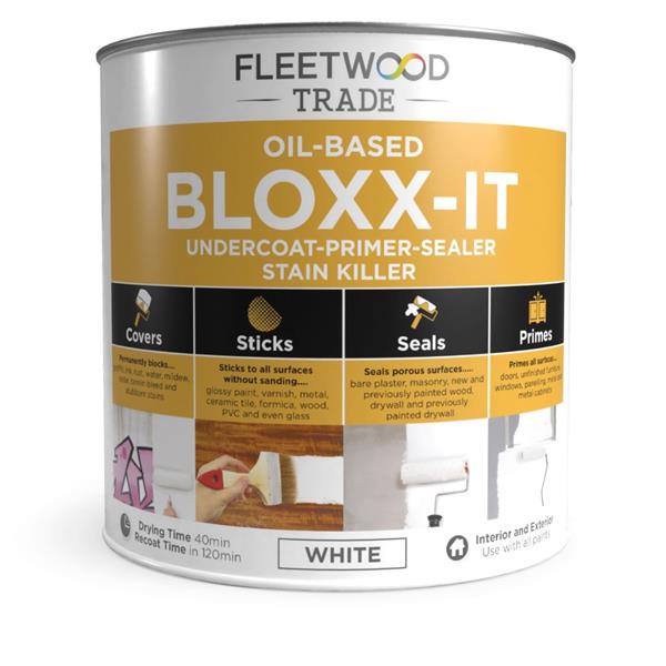 Fleetwood Bloxx-it Oil Base Primer 1L White, stain killer, fast drying, interior/exterior use – Keans Claremorris
