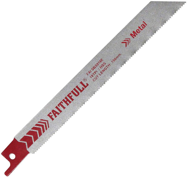 Faithfull S918E 150mm 18 TPI HSS sabre saw blades for metal cutting, pack of 5, available at Kean’s Claremorris. – online at