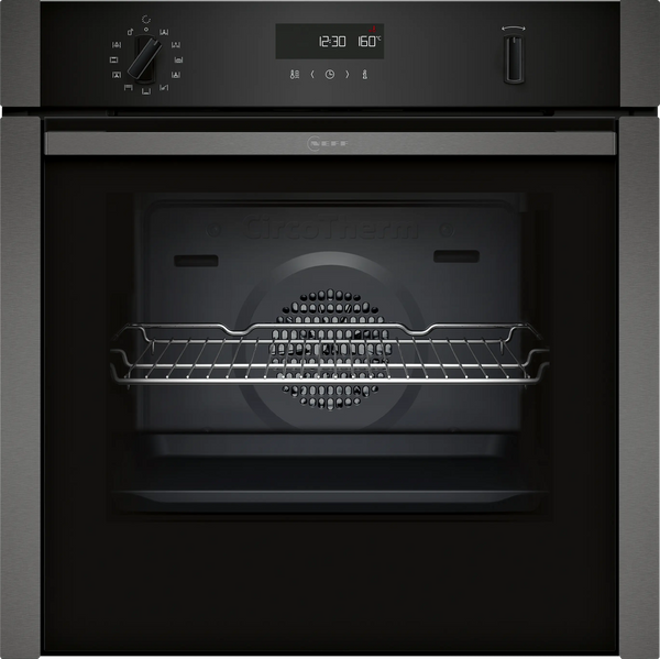 NEFF N70 Slide&Hide Graphite Electric Oven, 71L, Pyrolytic Clean, CircoTherm, Smart Home Connect – Kean’s Claremorris –