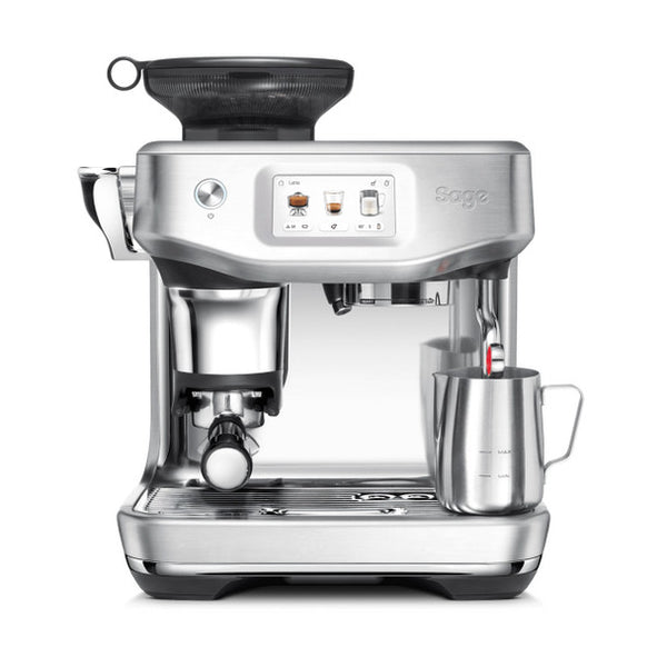 Sage Barista Express Impress espresso machine in brushed stainless steel with integrated grinder and auto tamping, available