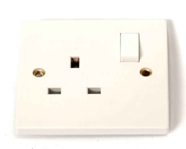 Phx 1 Gang Switched Socket 220V white plastic, screw fixings, ROHS approved – available at Keans Claremorris