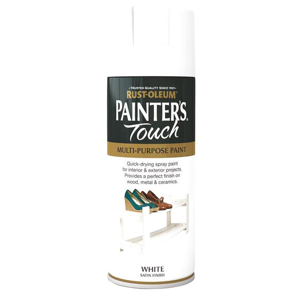 Painters Touch Satin White 400ml spray paint, fast-drying, durable finish, multi-purpose, from Keans Claremorris.