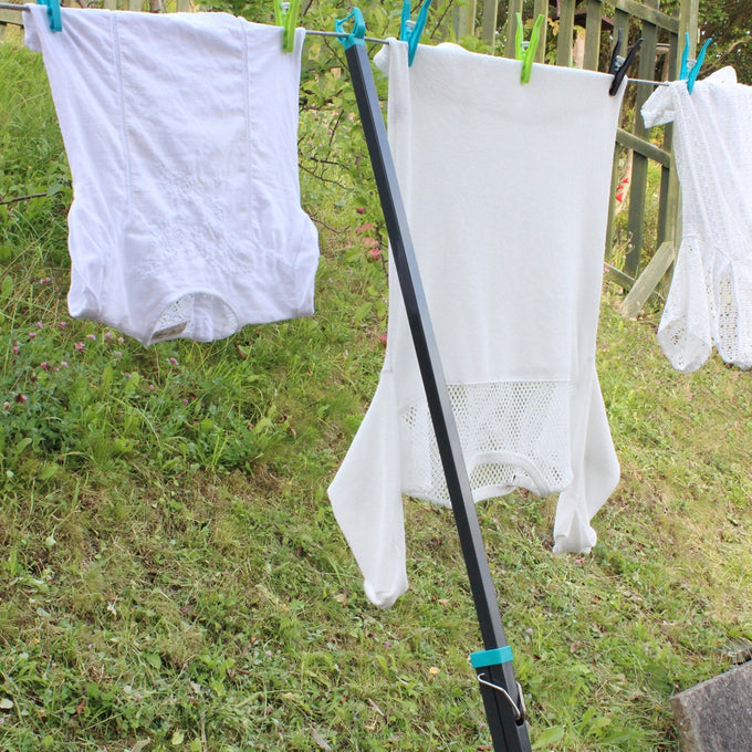 - The square clothes prop is designed to lift and support the line to prevent it sagging with wet laundry and to stop your bed sheets from touching the floor and getting dirty again.