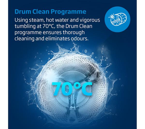 Cleans the drum at 70°C to remove bacteria and residues, keeping the machine fresh and hygienic. -