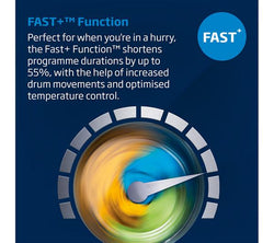 Wash a full 8kg load in just 28 minutes, ideal for busy households. -