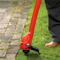 This lightweight, dual handled strimmer from Black & Decker is powered by an efficient and powerful 350 watt motor with a 25cm cutting swath making it ideal for use around small gardens. The strimmer uses Black & Decker's bump feed mechanism that automatically feeds line when required. The strimmers secondary handle gives you a better grip for a more accurate cut as well as proving extra user comfort.