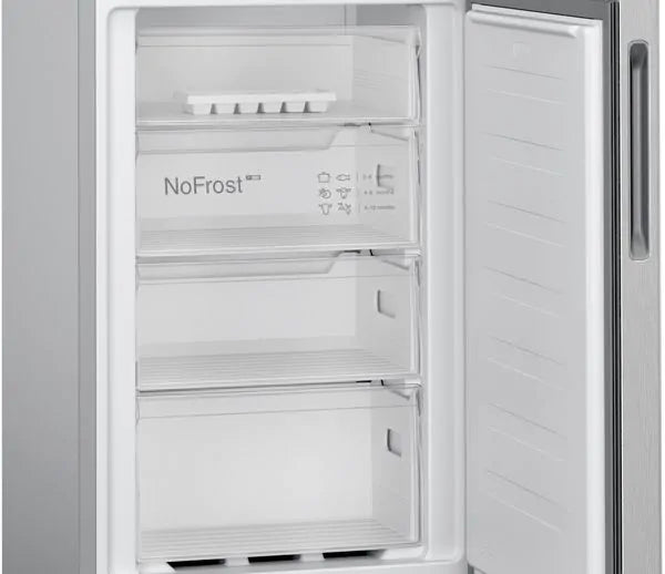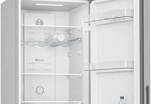 Enjoy effortless freshness with the Bosch KGN27NLEAG 55cm Freestanding Fridge Freezer, designed with NoFrost technology, a sleek stainless steel-look finish, and smart storage solutions to suit any kitchen. With a total capacity of 255L, this space-saving bottom-freezer model offers energy-efficient cooling, automatic defrosting, and even air distribution throughout for optimal food preservation.