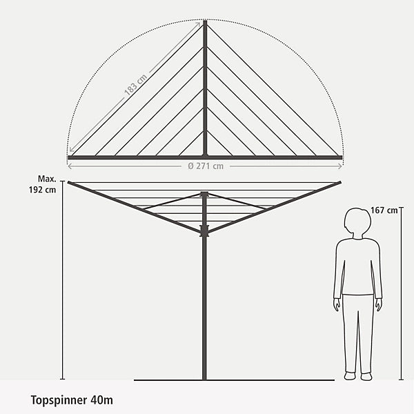 Dimensions when opened: Height 177cm, Diameter 271cm