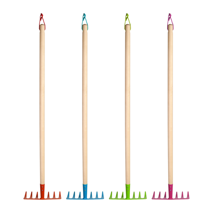 This cheerful coloured rake is a must have for little gardeners. The rake is provided with a loop for easy storage.
