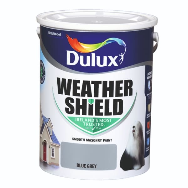 Dulux Weathershield Smooth Exterior Masonry paint is Made in Ireland to protect Irish homes from our unique weather. The Ultimate durability formula with Superior Flexibility protects the paint from cracking and flaking, while Superior Colour Retention ensures colours stay true and Superior Mould Resistance works against mould and algae growth for longer thanks to slow-release encapsulated biocide technology. Dulux Weathershield Ultimate Durability is our most durable exterior paint ever.