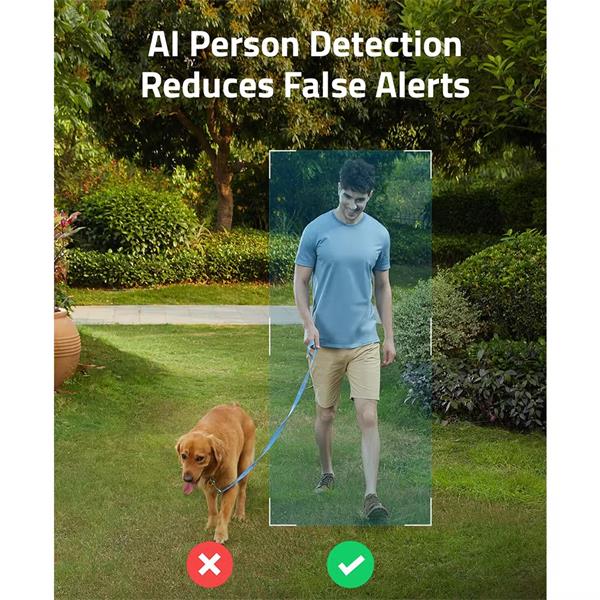 The advanced onboard AI only alerts you when a person strolls into view as opposed to pets or swaying trees. - Instant Alerts