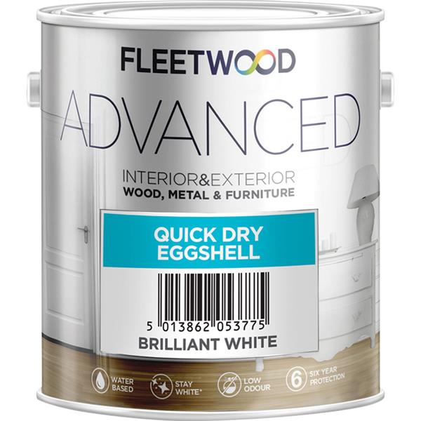 Fleetwood advanced quick dry eggshell is a quick drying water based paint that can be used on interior & exterior wood, metal, pvc and furniture. It has a 6 year protection range with low odour qualities.