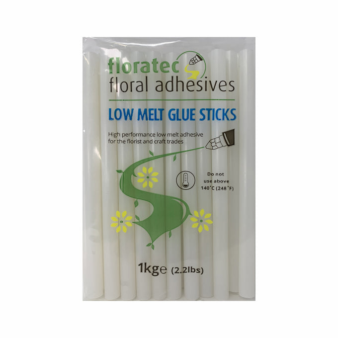 1kg bag of 12mm diameter Floratec low melt glue sticks. Approx 50 sticks per bag. Suitable for glue guns operating up to 140 degrees C including our Oasis low melt gun. Actual colour may vary a little from the photo depending on your monitor settings. All sizes are approximate.