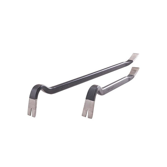 The Roughneck Gorilla Bar Twin Pack is made from drop-forged alloy steel which has been hardened and tempered. It features polished tips, with an oval shape to improve strength and control. Its low profile claw fits further under the workpiece for increased prying power, and its wider claw surface offers better control whilst resisting sinking into the support surface.