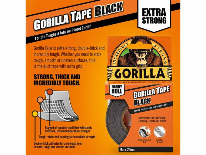 Gorilla 3044401 GRGTHR 9m 25mm Black Handy Roll Tape