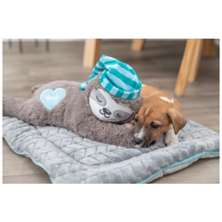 Snuggle up with this Junior Sloth with Heartbeat! This adorable plush toy is designed to provide soothing aid to help your little puppy fall asleep and is perfect for puppy owners who want to calm their pup. It has a simulated heartbeat of the mother that starts and stops at the push of a button and will automatically stop after 20 minutes; simply remove the heart before washing. Enjoy some extra cuddles with your pup!