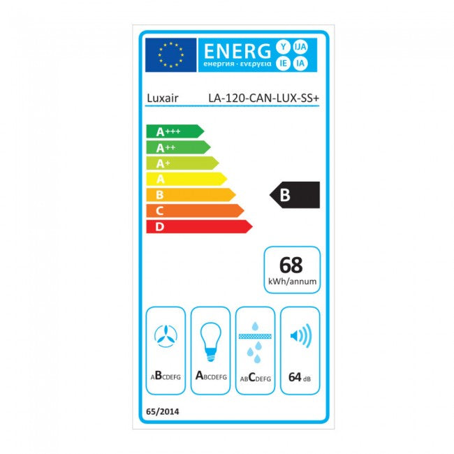 LA-CAN-SS-PLUS Charcoal Filters Duct Size (6 metre Max) Metal Grease Filters Fuse Type EEI Rating Motor Warranty Lighting Remote Control Switch Type 52cm + 74cm - 2x Round 6 120cm - 2x Round 5 125mm Minimum (150mm Recommended) LA-52-CAN-PLUS x1 406x189 LA-74-CAN-PLUS x1 506x189 LA-120-CAN-PLUS x3 320x177 - Heavy Duty *You must measure your mesh grill size. Older models might have different sizes to current models* 3 amp B All Sizes - 780m³/hr 7 years Parts & Labour (Subject to Registration) 2x LED Fittings 3w 4000 Kelvin N/A 52cm + 74cm - Push Button 120cm - Electronic Timer Box Dimensions (CM) & Weight Box LA-52-CAN 61x37x37 5.5Kg LA-74-CAN 81x37x37 7Kg LA-120-CAN 122.5x37x37 15Kg 484/704/1163 520 - 740 - 1200 273 95 150 291 242 251 Speed 1 Speed 2 Speed 3 Boost Function Timer Function (120) (Unrestricted 52 - 74) Extraction Rate 235m³/hr 440m³/hr 645m³/hr N/A N/A Up To 90 Mins Timer Function (52-74) N/A Noise Levels DB/A 53 DB 61 DB 70 DB (Unrestricted 120) 240m³/hr 352m³/hr 465m³/hr 710m³/hr Noise Levels DB/A 51 DB 57 DB 64 DB 71 DB Min Distance from Hob Electric: 650mm Gas: 750mm