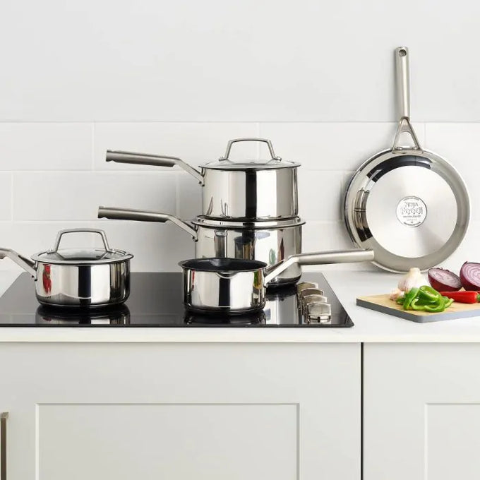 Stainless steel collection: The best of both worlds, this elegant range is expertly crafted from polished stainless steel with an aluminium core, delivering even heat distribution and excellent high-heat searing. Complete with cast stainless steel handles that are comfortable to hold, it makes the perfect choice for confident chefs, kitchen newcomers and style-conscious cooks.