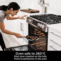 Oven safe to 260°C: Start your creation on the hob, finish to perfection in the oven. Ideal for crisping up an omelette under the grill, giving your cauliflower cheese a bubbling topping or simply keeping your food warm.