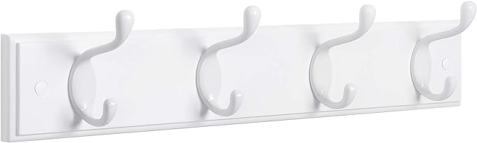 Organize and easily access your keys, hats, coats, and bags each morning with this coat rack. Its sturdy metal hooks and wooden base can hold up to 15.9 kg when mounted on a solid wall or studs, making it perfect for heavy winter jackets and bags. Whether in your hallway, closet, bedroom, or bathroom, this elegantly designed rack is a practical addition to any space. Its simple installation process, with only 2 screws, means anyone can set it up without difficulty. Make your entryway more tidy with this durable coat rack, featuring 4 dual hooks, easy assembly, and 2 screw caps for a polished finish.