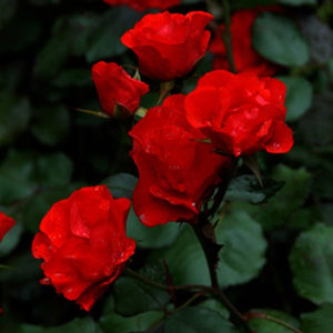 Beautiful rose with loose clusters of medium-sized, semi-double flowers with reddish glossy foliage and a upright bushy growth