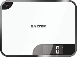 Streamline your cooking and baking with the Salter Mini Max 5 Digital Kitchen Scale, a sleek and compact scale that combines style, precision, and multifunctional convenience. Designed for modern kitchens, it features a clear white glass platform and an easy-to-read digital display—perfect for weighing both solids and liquids with accuracy.