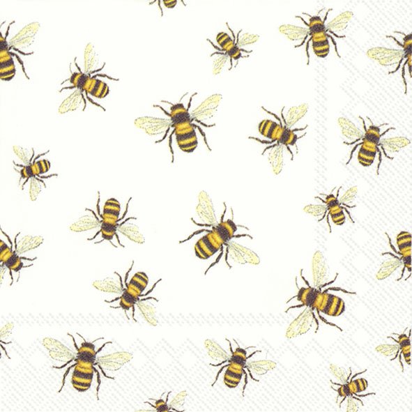 Save The Bees!! White Cocktail Napkins – 20 Pack (25 x 25 cm)