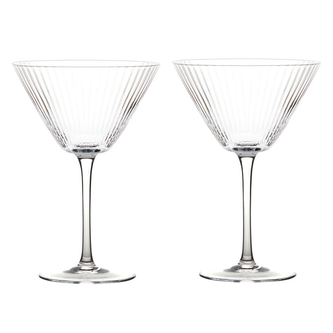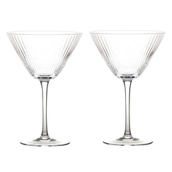 Enhance your cocktail enjoyment with Set of 2 Empire Cocktail Glasses from Anton Studio Designs' Empire Collection. These glasses have a modern bowl design with smooth edges and a delicate optic pattern, paired beautifully with long, sophisticated stems. Meticulously crafted by experienced artisans, these glasses are elegantly packaged and serve as an excellent addition to any barware set.