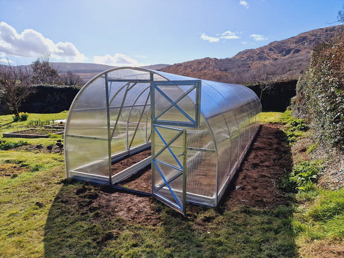 Greenhouse dimensions: Width 3 m, length 10 m and height 2.1 m, 30 m².
