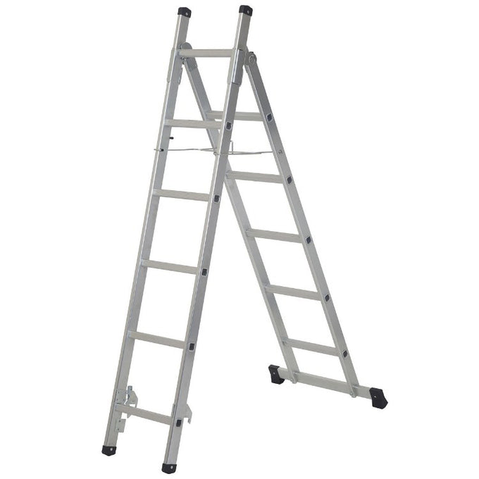 3-in-1 design: stepladder, extension ladder, and stairwell ladder