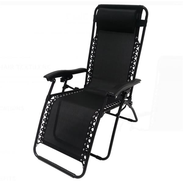 Multi position zero gravity chair All black design that will suit all tastes Includes headrest for added comfort